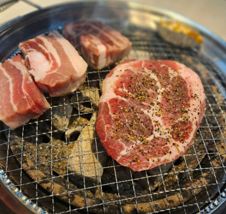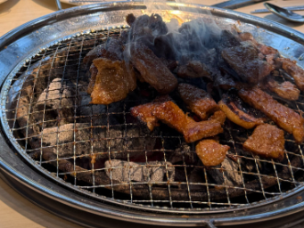 다음엔 삼겹살 구워주고 마지막엔 갈비를 구웠는데